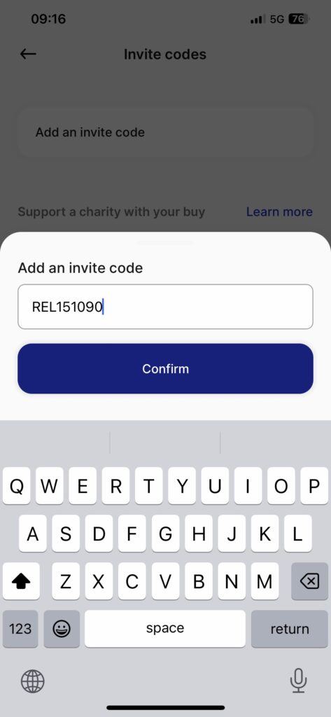 “Copy and Paste” Relai invite code: „REL151090“.